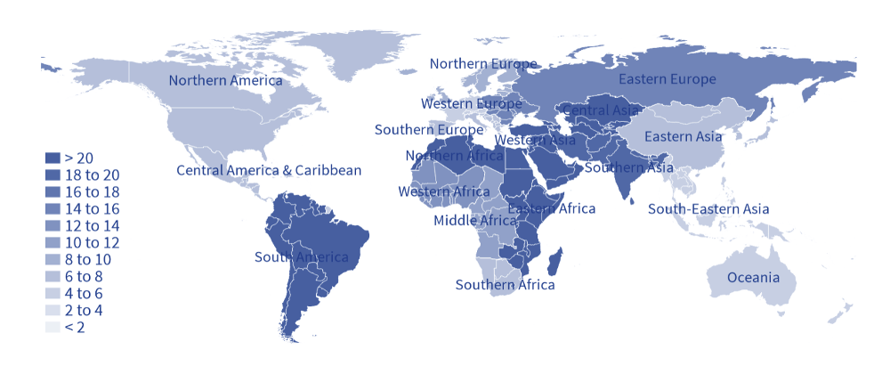 Despite the fact that forecasts for inflation worldwide in 2022 are somewhat high, projections for inflation in individual countries and regions differ quite a bit. According to projections made by economic analysts, countries in South America, West and Central Asia, North and East Africa, and Africa all have the potential to see rates of inflation that regularly exceed 20%. The regions of the world with the lowest estimations for inflation are North and Central America, a major chunk of Europe, East and Southeast Asia, Oceania, and Southern Africa, all of which have numbers that are lower than 10%. This also demonstrates that Germany’s historically high inflation rates, which are the subject of a considerable amount of political and popular controversy, are nevertheless relatively moderate in comparison to those of other nations.