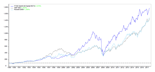 Figure 2: Stocks (S&P/Russell) vs. REITs index comparison. Source: Nareit